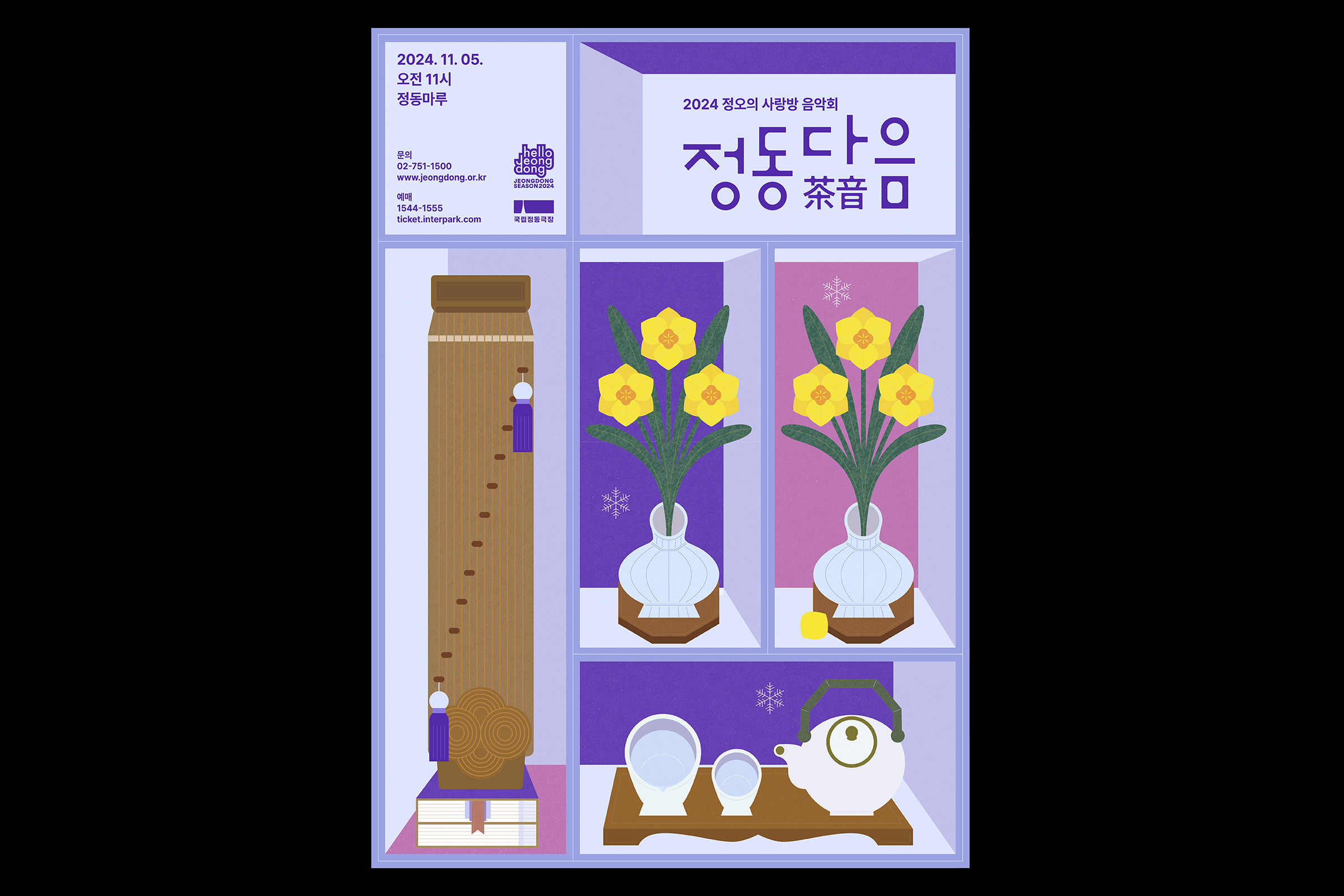 We designed the key visuals for Jeongdong Daum, a therapeutic concert combining tea, meditation, and music, held monthly at Jeongdong Theater.