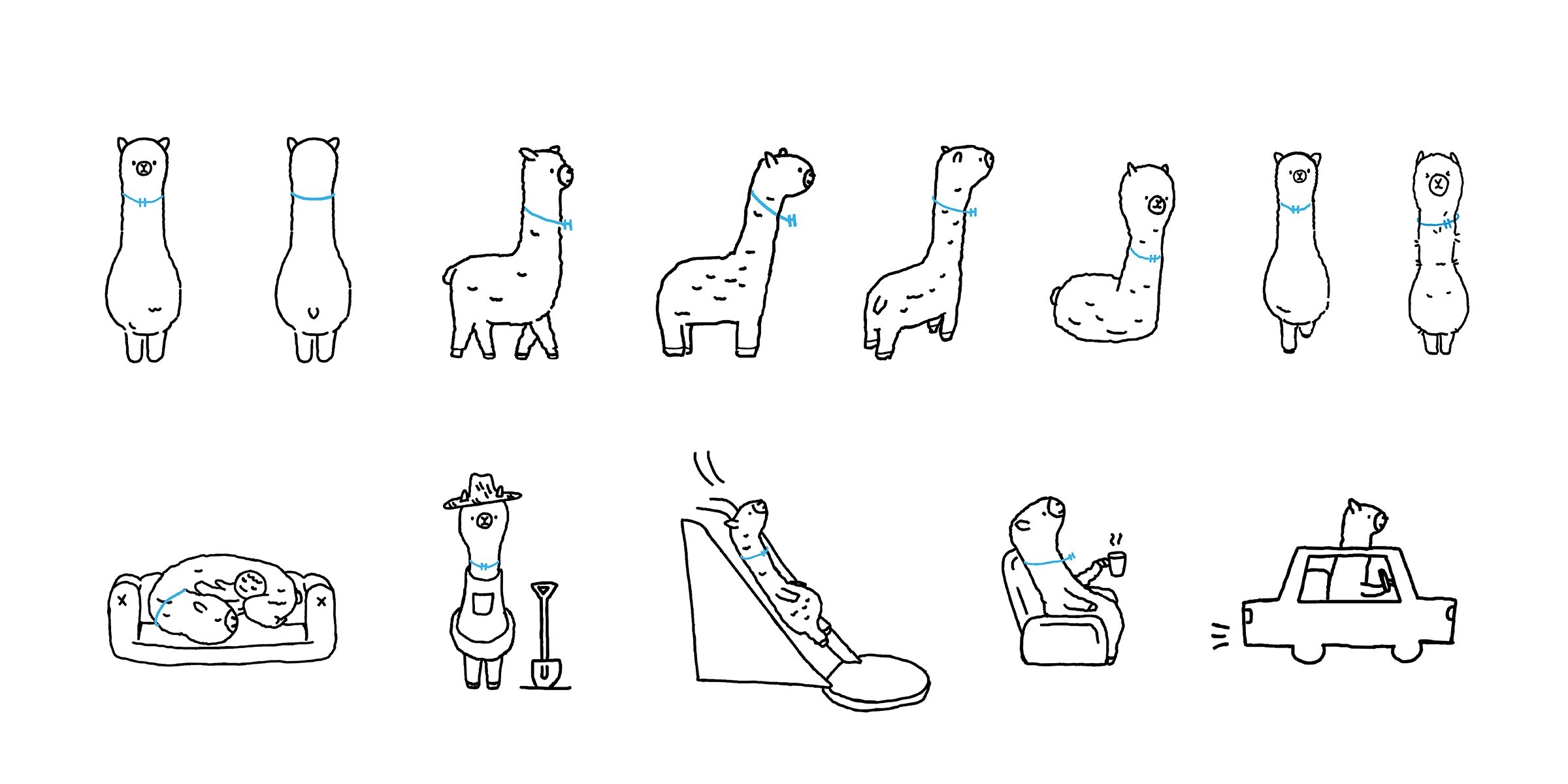 We developed the main character from an alpaca, a herbivore species that lives in a clean environment and temperate climate. Based on the character, we developed and produced applications such as catalogs, drawing books, packable bags, and packages.